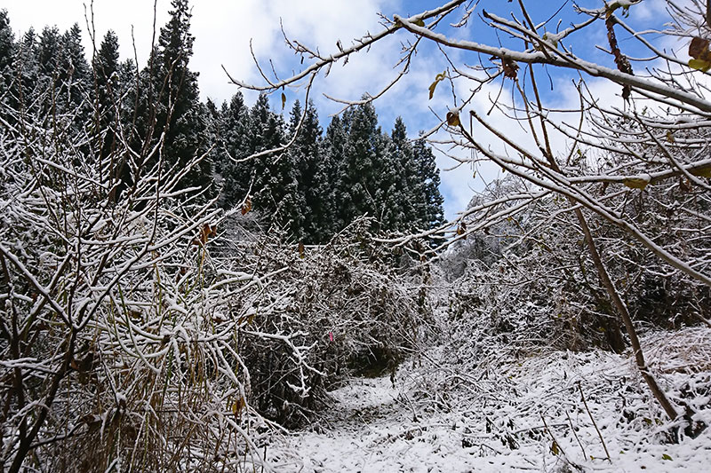 雪の中の間伐