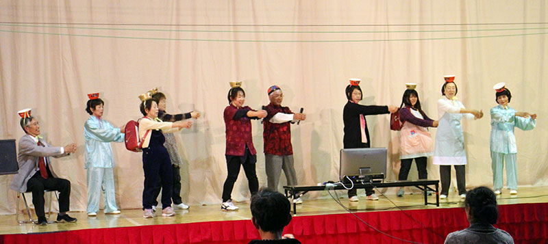快楽中国語講座の方々による『秘伝 ラーメン体操』・・とってもキャッチーなメロディーと工夫を凝らした衣装が観客の目を離しません。