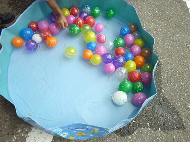 無料コーナー 概ね100人分用意の風船ヨーヨー・かき氷は大人気