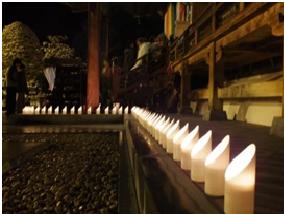 お灯明が幻想的 本堂に上がり行く年来る年に祈りを捧げ、お守りを授かりました。