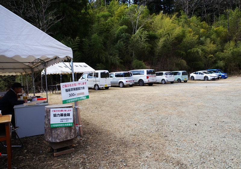 福寿草園に行きました。広々とした駐車場に車を停めて歩き始めました。