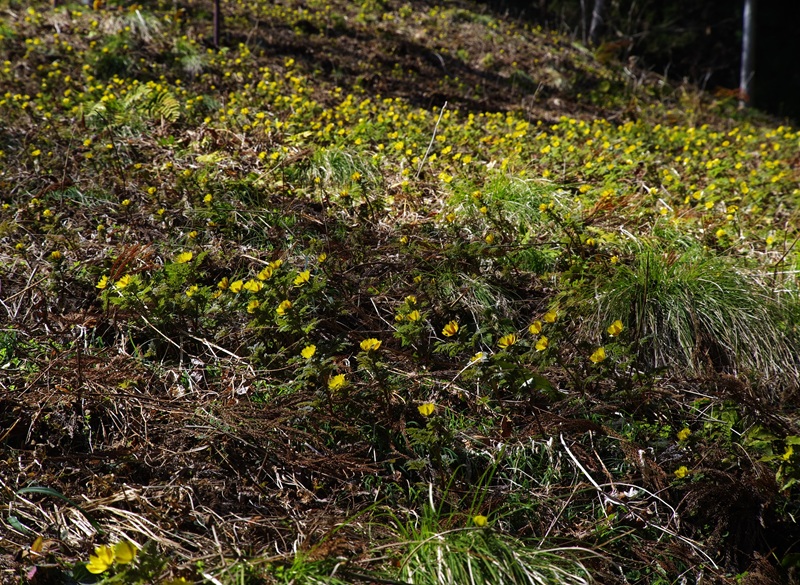 斜面に咲いた福寿草です